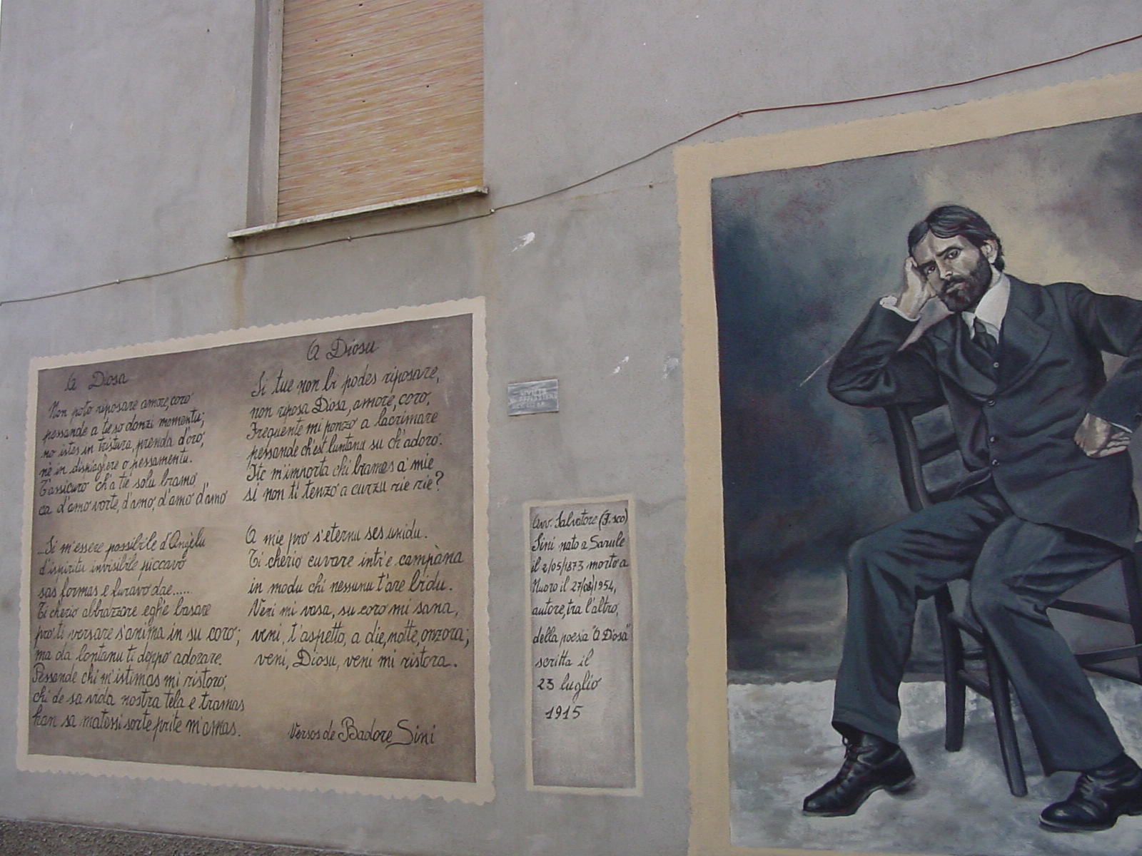 The song was written by a Sarule lawyer, a poet, a playwright, Salvatore Sini (known by the name Badore). It is said that Badore, one day when he was pervaded by immense sadness, sitting at his desk, wrote as he always did in his diary: “Nuoro 23 July 1915 at 3:50 pm at 4 pm, A diosa... "